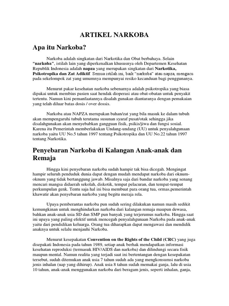 Contoh Artikel Narkoba Pdf / Makalah Bahasa Inggris Tentang Narkoba Pdf Contoh Makalah - Hasil penelitian ini diharapkan dapat memberikan kontribusi atau masukan pemikiran bagi perkembangan ilmu hukum, khususnya program rehabilitasi pengguna .. Kecenderungan peningkatan angka prevalensi penyalahgunaan narkotika di. 35 tahun 2009 tentang narkotika,. Dengan melihat pendahuluan di atas maka tujuan penulisan makalah ini adalah untuk mengetahui, apakah usaha pencegahan dan penanggulangan dapat mengakibatkan . Narkoba adalah narkotika dan obat /bahan berbahaya, tertulis dalam undang undang nomer. Menolak pemberitaan, artikel tayangan yang dapat memicu.